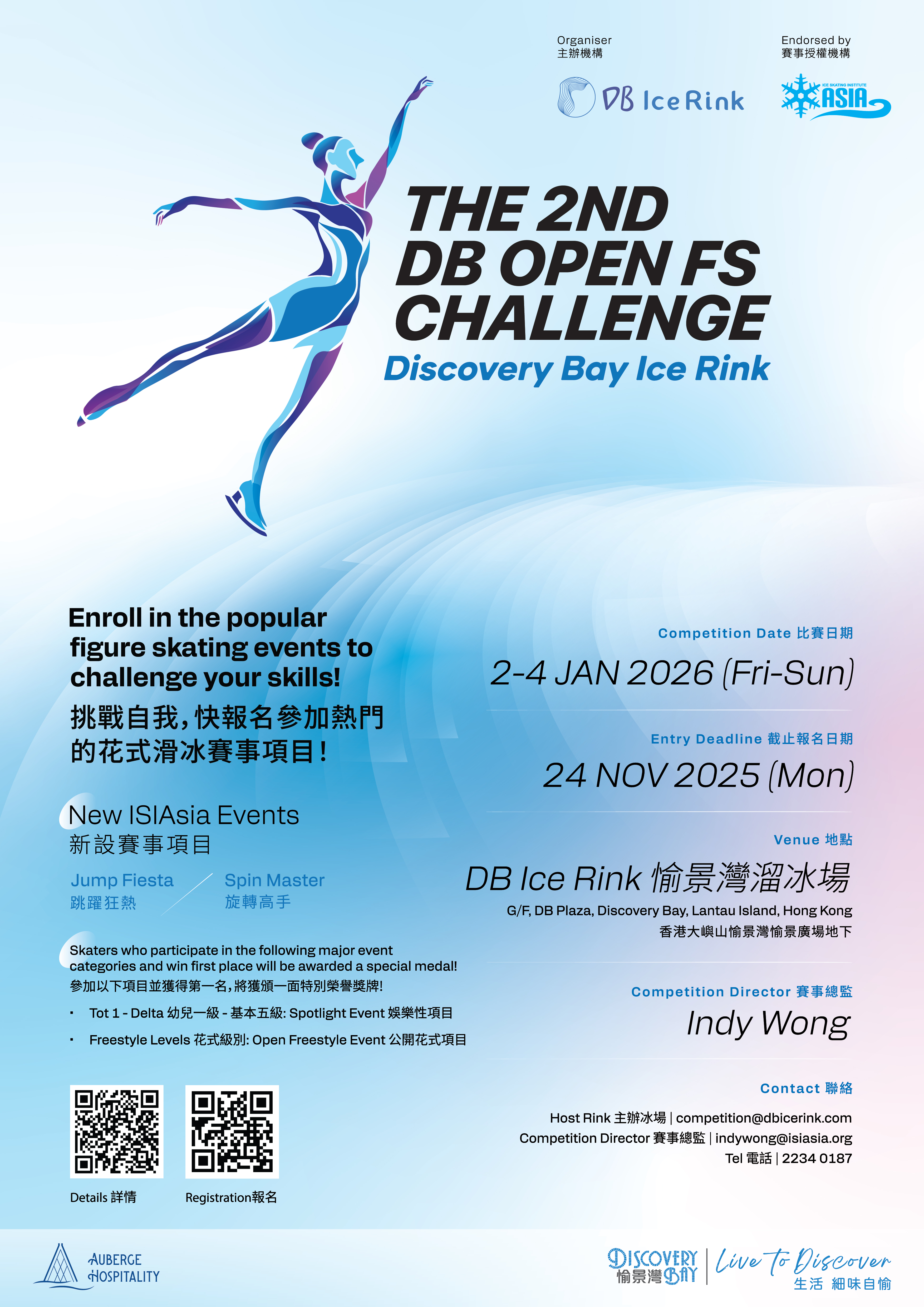 *请确保参赛者在比赛期间持有有效的ISIAsia会籍并在比赛前完成注册项目相关等级(如有疑问请至ISIAsia办事处查询)。