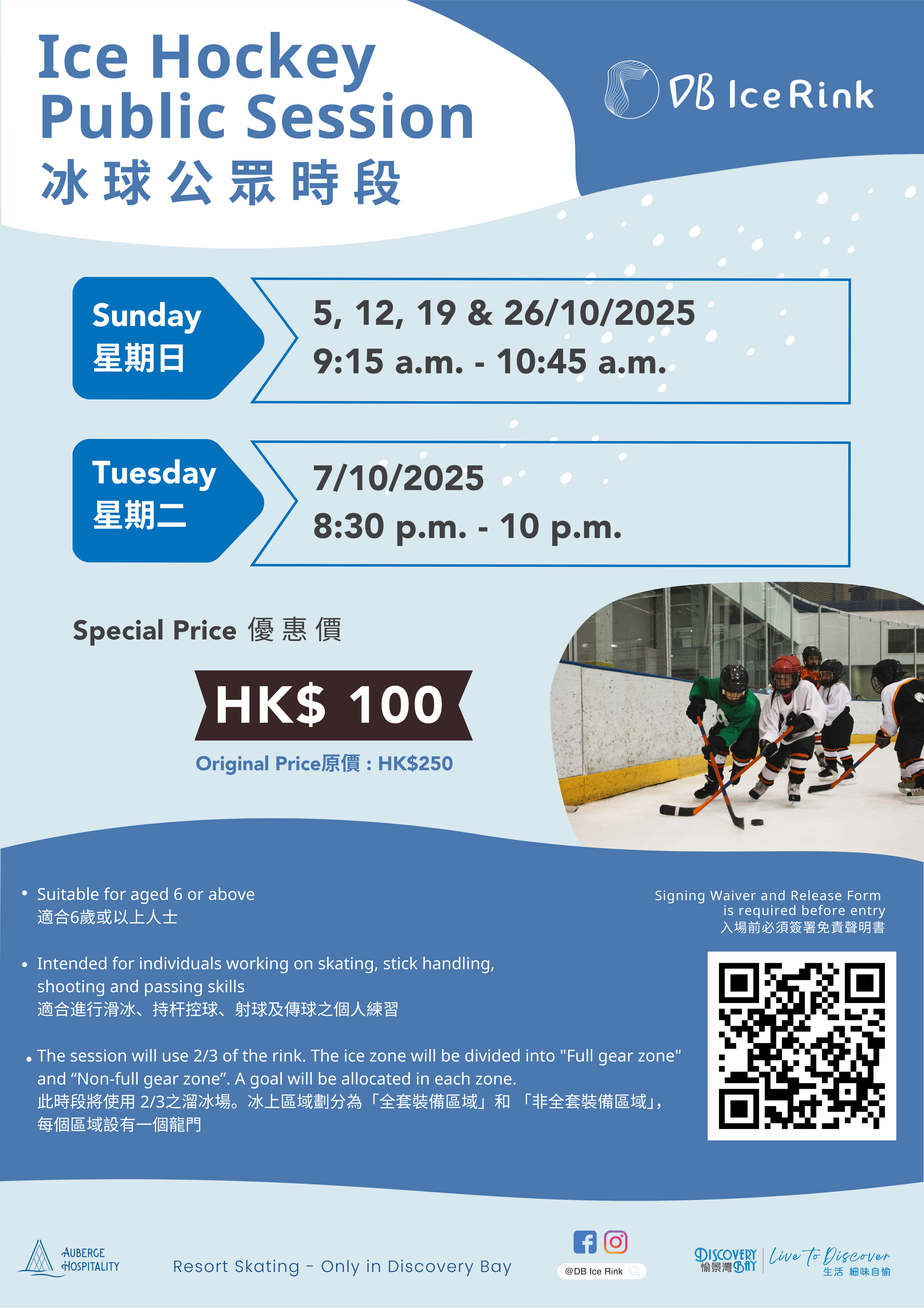 -冰球公眾時段嚴禁大 力擊射或肢體衝突及禁止任何課堂或培訓活動。